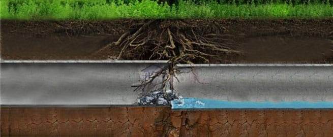- Ağaç Kökü Saldırısı – ağaç kökleri su kaynağının yönüne doğru büyür. Bu nedenle genellikle drenaj borularında büyürler ve kırılmalarına veya çatlamalarına neden olurlar. Hemen tamir edilmediğinde, sonunda çökmüş bir drenaja yol açabilir. Bu soruna çözüm olarak ağaç kaldırılabilir veya yeni bir tahliye hattı kurulabilir.